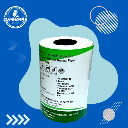 SUPERMAX PREMIUM THERMAL PAPER POS ROLLS 78/79/80 MM,3 INCHES,T48,PACK OF 10 ROLLS