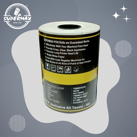 SUPERMAX PREMIUM THERMAL PAPER POS ROLLS 78/79/80 MM 3 INCHES E50 PACK OF 10ROLLS