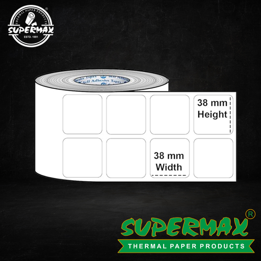 SUPERMAX 38x38 Direct Thermal Barcode Label Sticker 1.5" x 1.5"inches - 1000 Labels Per Roll pack of 5