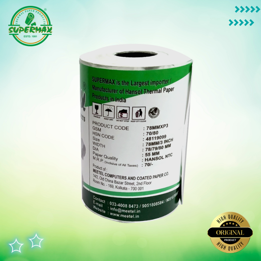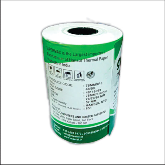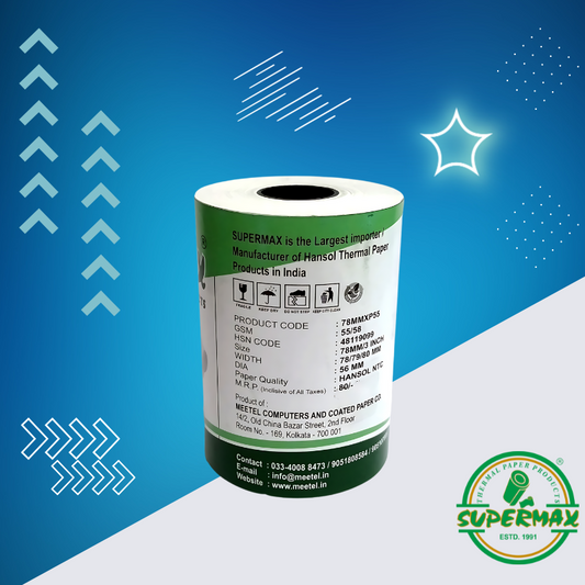SUPERMAX PREMIUEM THERMAL PAPER POS ROLLS 78/79/80 MM 3 INCHES P55 PACK OF 10 ROLLS