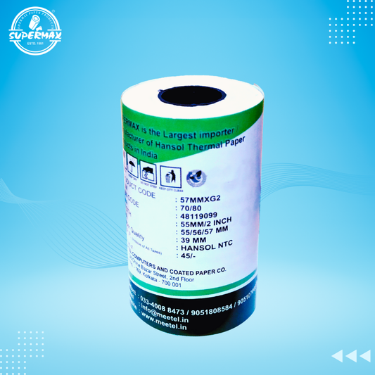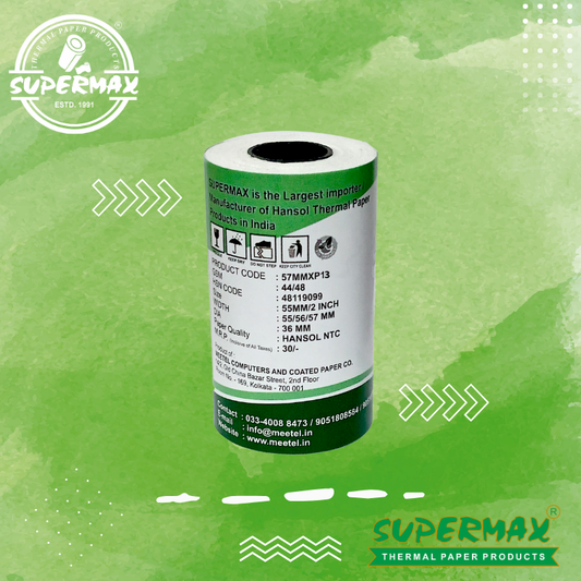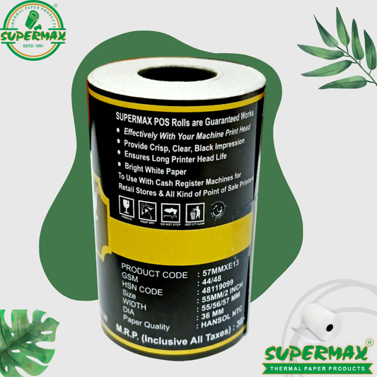 SUPERMAX PREMIUM THERMAL PAPER POS ROLLS 56/57/58 MM 2 inch,E13 PACK OF 50, Buy Thermal Paper Rolls | POS Roll | Jumbo Thermal Paper Rolls & More – Supermax