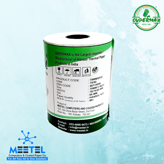 SUPERMAX PREMIUEM THERMAL PAPER POS ROLLS 78/79/80MM 3 INCHES P33 PACK OF 10 ROLLS